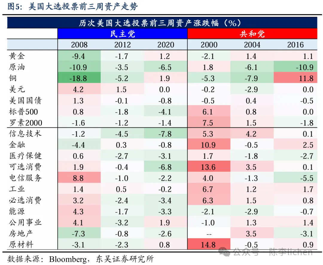 整体而言,历史上大选前3周开始,市场开始定价共和党总统上台,市场表现好于民主党总统。不过总统的政策能否顺利推进、落地并实施,国会尤其重要。